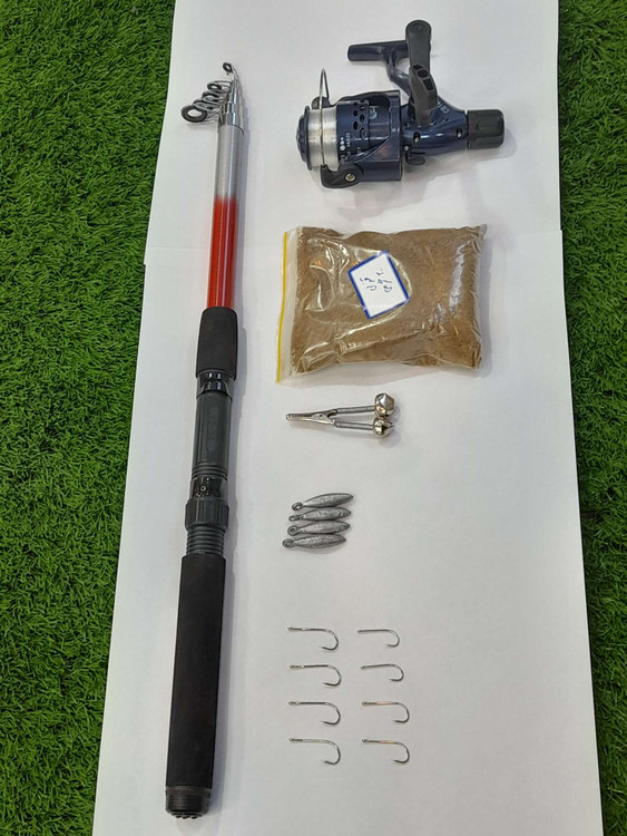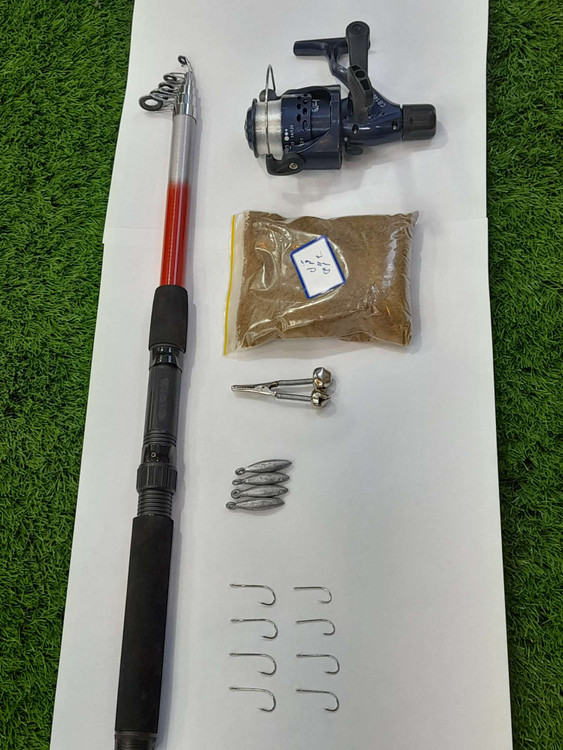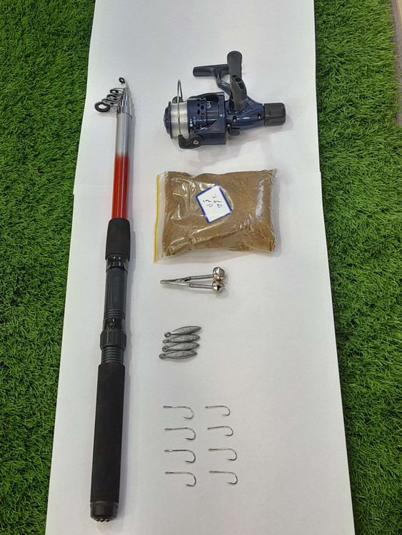 لیست کل تجهیزات: چوب تلسکوپی کاپیتان مدل آلفا سایز۲۴۰ سانتیمتری چرخ ماهیگیری کبری به همراه نخ لوفاک قزلی ۲۰۰گرمی سرب موشکی ۱۵ گرم ۴ عدد قلاب پایه بلند موستاد سایز یک ۴ عدد سایز ۲ دو عدد سایز ۴ دو عدد زنگوله ماهیگیری فلزی یک عدد