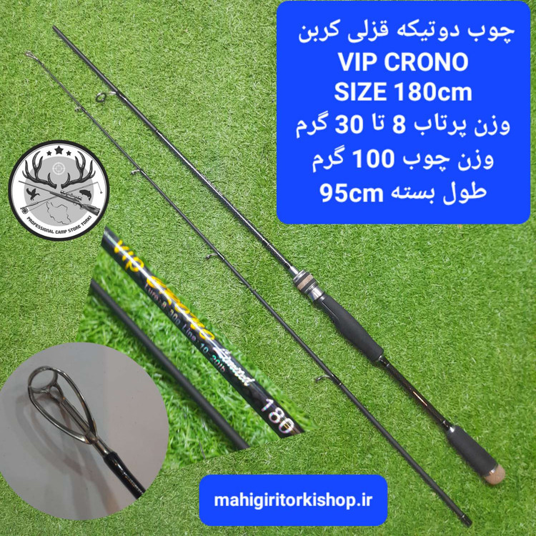 چوب ماهیگیری دو تیکه قزلی فوق با نام انگلیسی VIP CRONO کاملا نو میباشد ولی در اثر جابجایی و در حمل و نقل سرامیک حلقه سرچوب آن افتاده که به خاطر همین با قیمت بسیار کمتر بفروش میرد