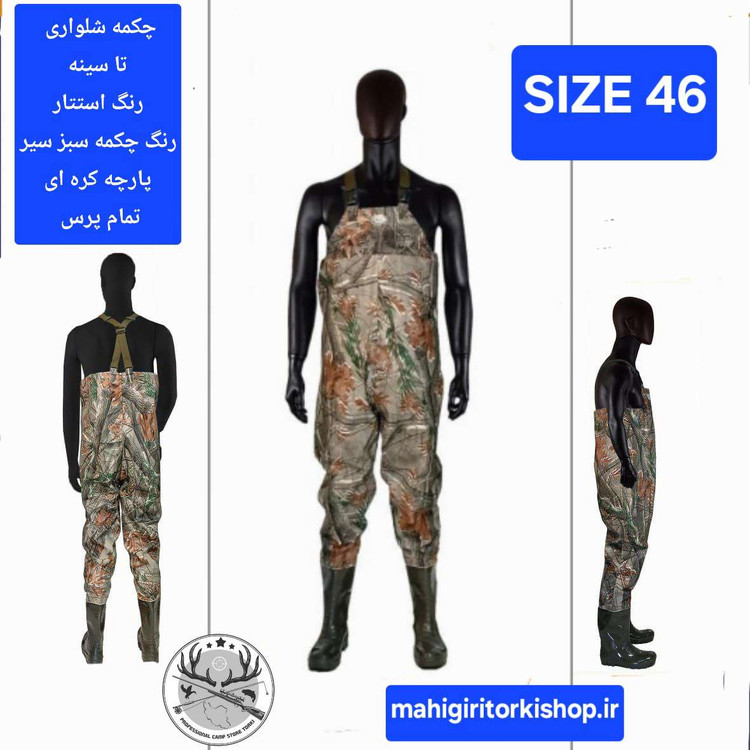 در بسیاری از مواقع لازم است که ماهیگیر یا شکارچی تا عمق زیادی در آب حرکت کند تا در مکان مناسب جهت صید یا شکار قرار گیرد از این رو لازم است از چکمه شلواری تا سینه و البته با رنگ استتار استفاده کند