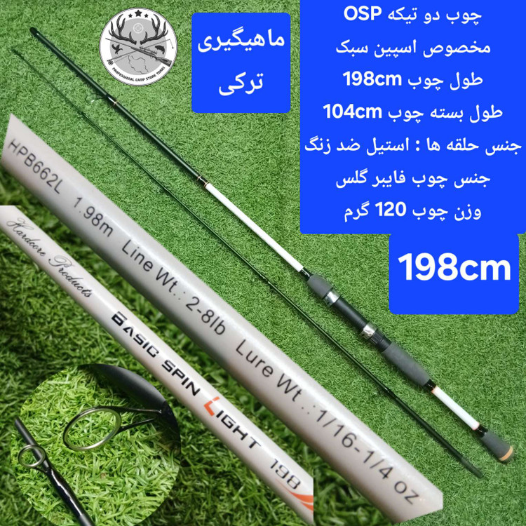 چوب ماهیگیری فوق از برند OSP با طول ۱۹۸ و وزن پرتاب حدود ۳۰ تا ۴۰ گرم مناسب اسپین سبک میباشد محدوده نخ مجاز در این چوب بین ۲ تا ۸ پوند میباشد
