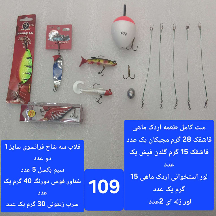 نوع و مشخصات ست کامل طعمه ماهیگیری