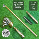 چوب تلسکوپی فایو استار چوبی بسیار شکیل دارای جای چرخ کاملا فلزی و حلقه های برنجی زیبا و دارای وزن پرتاب ۸۰ تا ۱۵۰ گرم در دو سایز ۳۶۰ و ۴۲۰ سانتی که هر دو مناسب سد و دریاچه میباشند و بدلیل وزن پرتاب مناسب میتوان پرتابهای بلند با آنها داشت و دارای مقاومت بالا بدلیل جنس فایبر کربنی که دارند میباشند