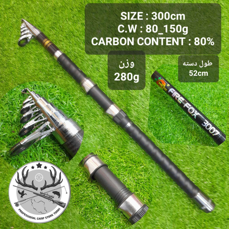 چوب ماهیگیری فایر فاکس اصلی با ۸۰ درصد کربن یک چوب سبک مقاوم انعطاف پذیر و در سایزهای متنوع برای سیستمهای مختلف ماهیگیری مناسب است